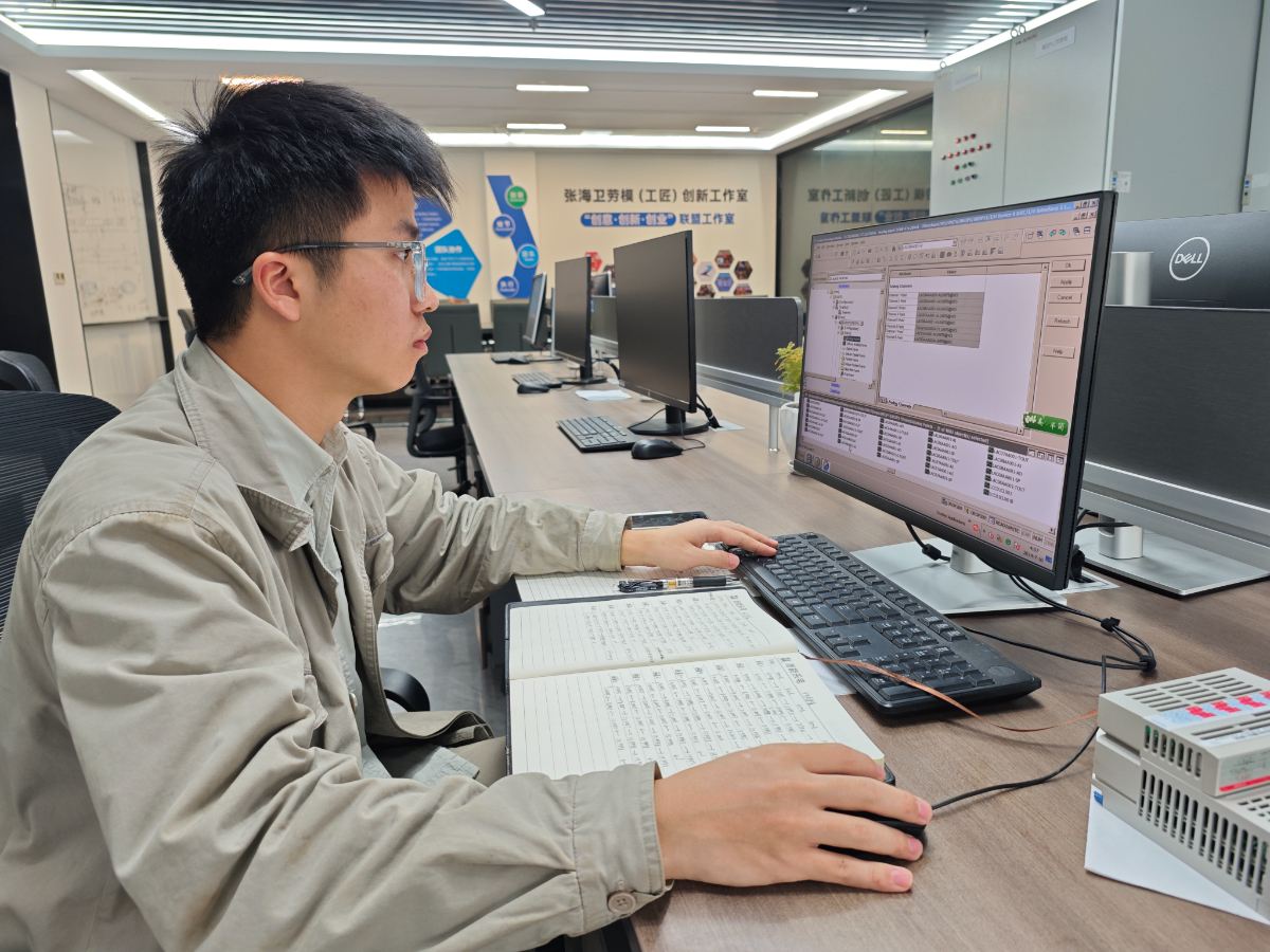 乐电维护部钟佳源在电子室送信号。 胡远亮 摄