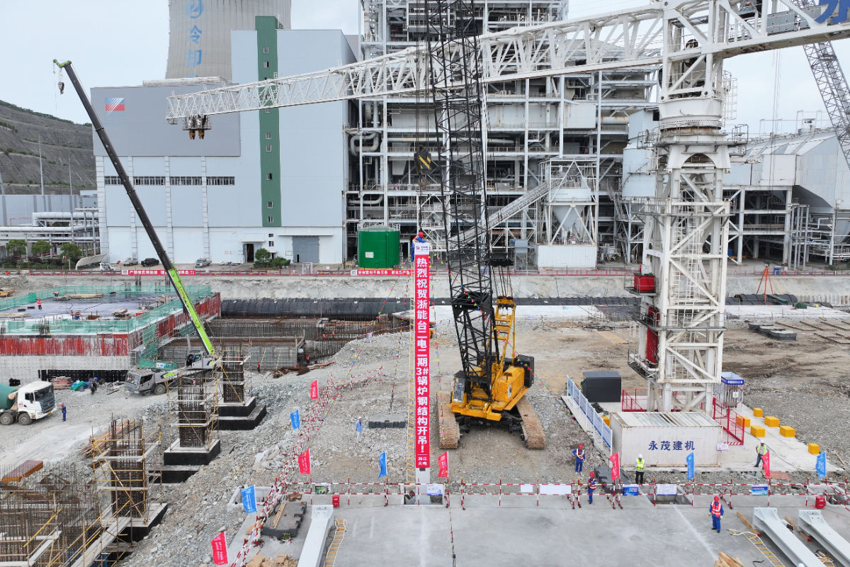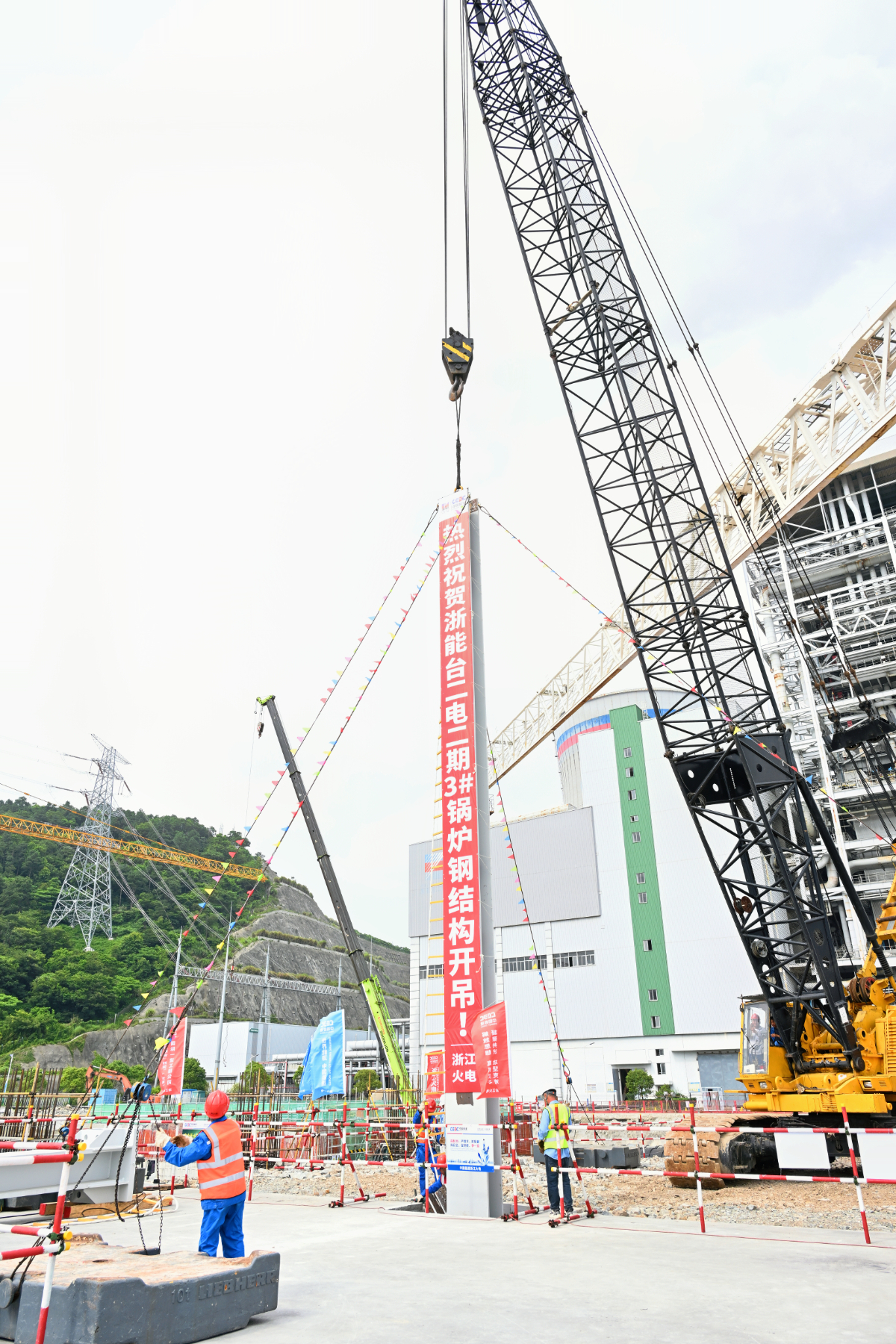 5月30日,台二电二期3号锅炉钢结构顺利开吊。 俞琬 摄