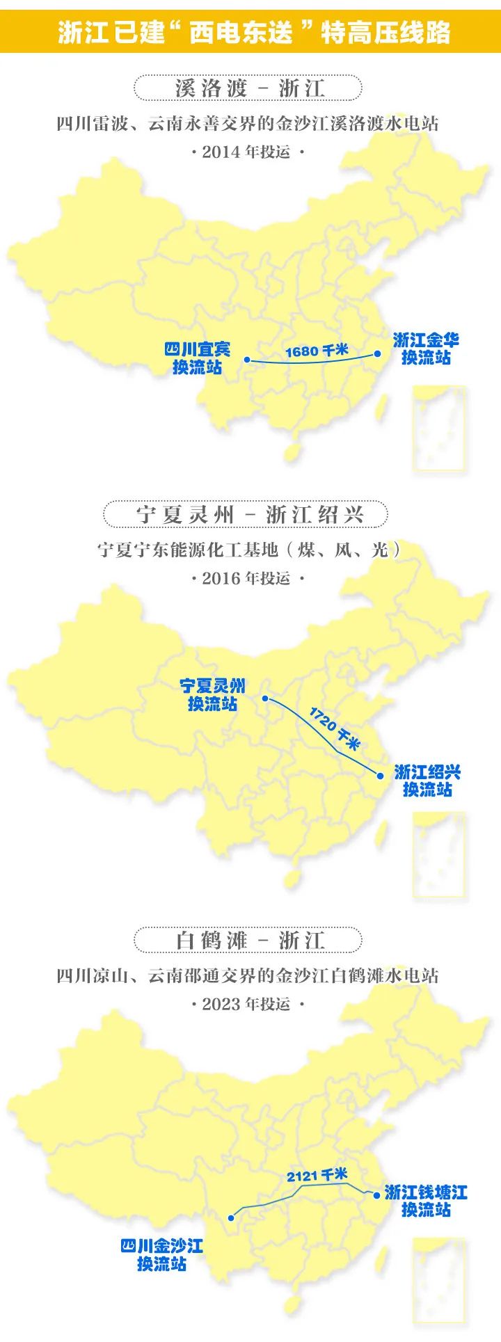 就在去年6月,白浙特高压完成全容量投运,将四川白鹤滩水电站的清洁能源注入浙江;早前,宾金、灵绍特高压工程分别从四川溪洛渡水电站和宁东能源化工基地通往金华和绍兴。