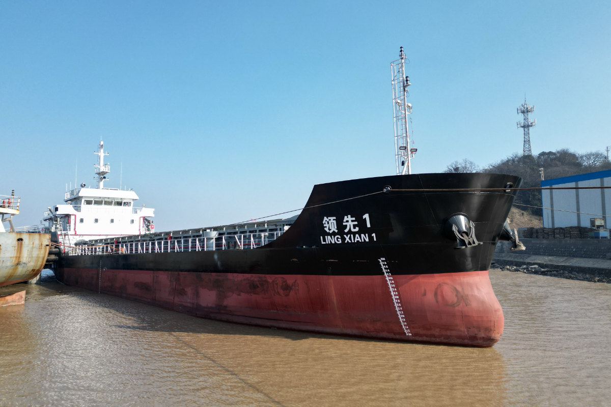 瑜伽色情 迈领“领先1”轮正在舟山进行甲醇双燃料主机改装。 李梦 摄