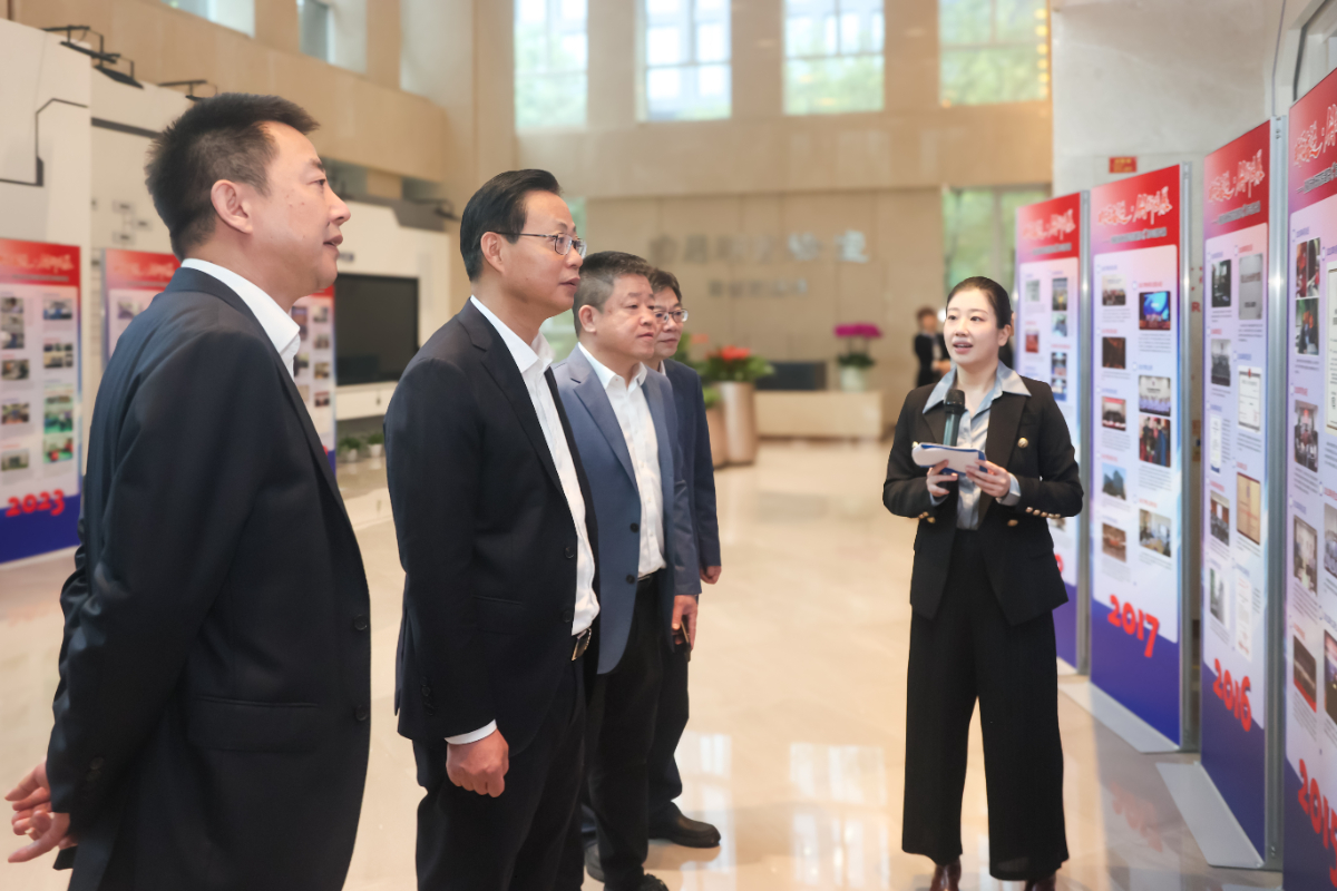 集团党委书记、董事长刘盛辉一行参观技术研究院建院15周年发展图片展。 施伊珏 摄