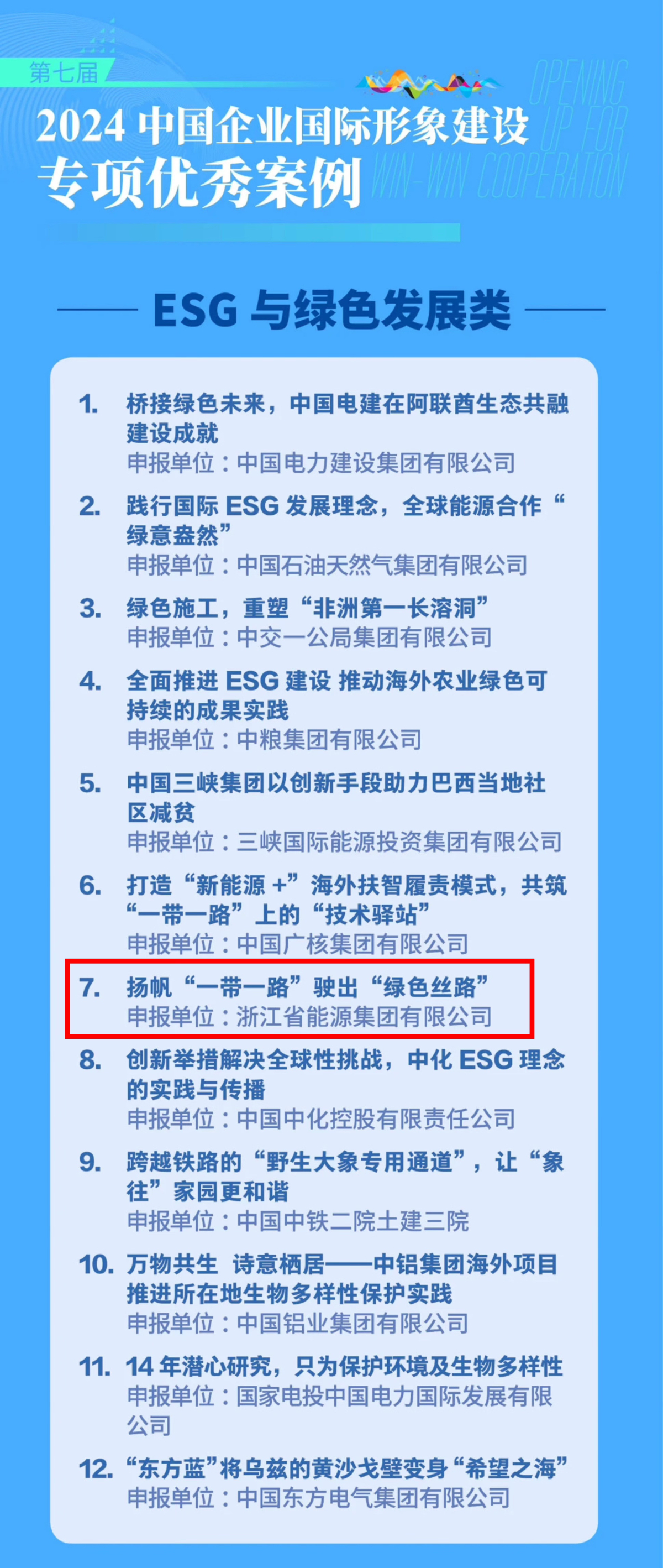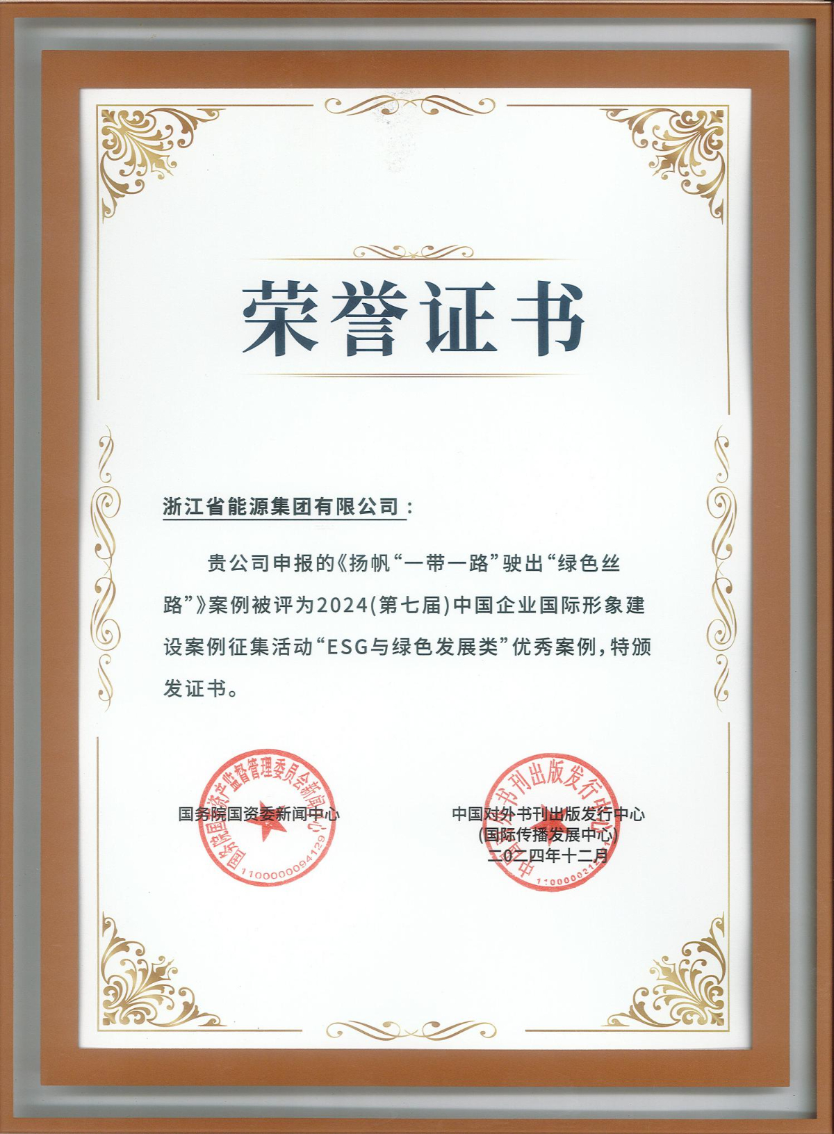 论坛上,“2024(第七届)中国企业国际形象建设案例征集活动”评选结果正式揭晓。来自瑜伽色情 的案例——《扬帆“一带一路”驶出“绿色丝路”》获评ESG与绿色发展类优秀案例, 为唯一获该奖项的省属国企。