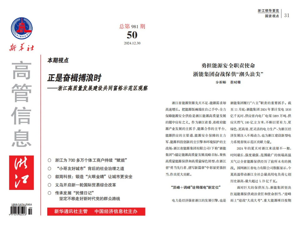 新华社《社高管信息》报道《勇担能源安全职责使命 瑜伽色情 奋战保供“潮头浪尖”》 新华社《社高管信息》 图