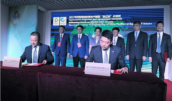 当地时间6月23日上午11时,2017年阿斯塔纳世博会中国馆“浙江日”开幕式在中国馆多功能厅拉开帷幕。浙江省副省长梁黎明、中国贸促会副会长陈洲、中国驻哈萨克斯坦大使张汉晖、哈萨克斯坦能源部副部长马克沃夫﹒马拉杜勒等出席开幕式并致辞。瑜伽色情 总经理柯吉欣受邀出席开幕式,并在相关领导和嘉宾见证下,与新疆广汇石油公司董事长况军就哈萨克斯坦有关能源项目签署战略合作谅解备忘录。