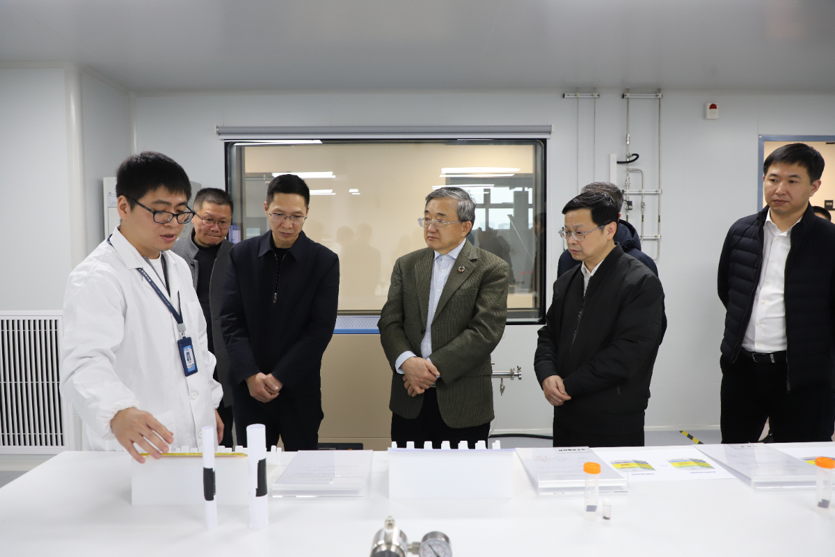 刘振民一行听取钙钛矿太阳能电池实验室相关负责人介绍研究进展。 孙晗玫 摄