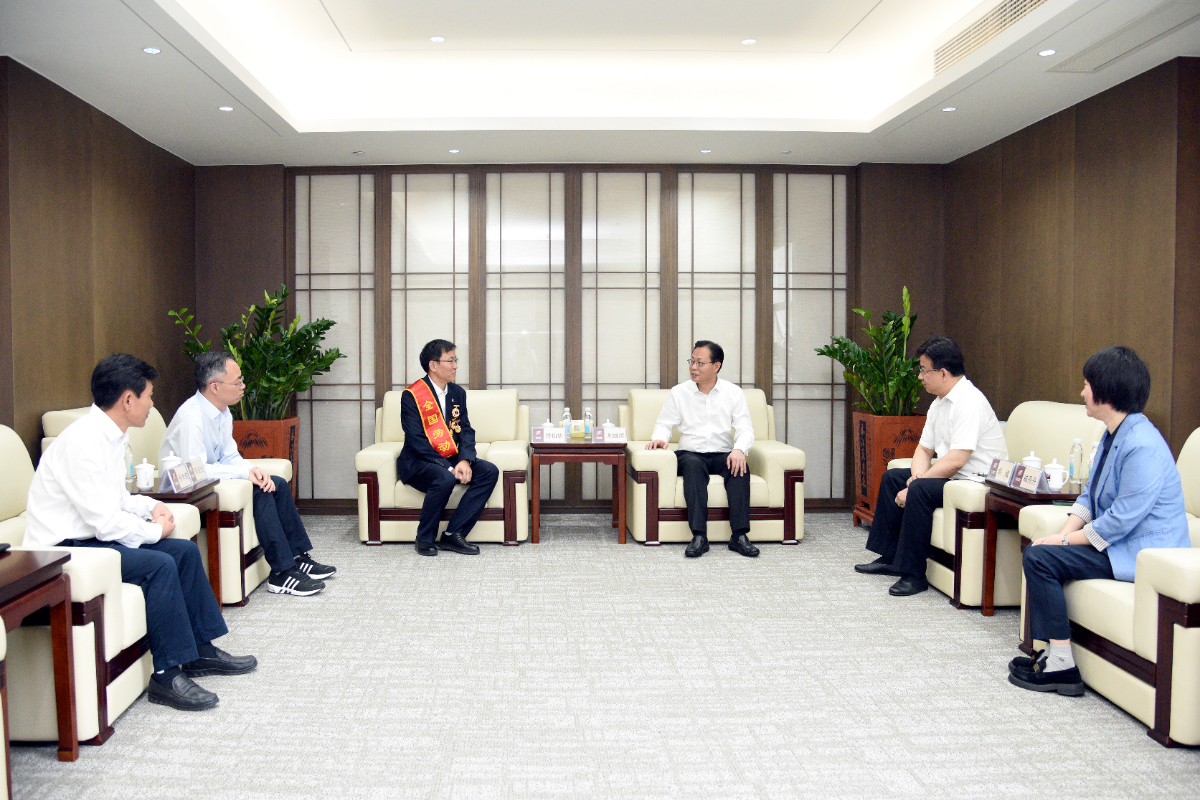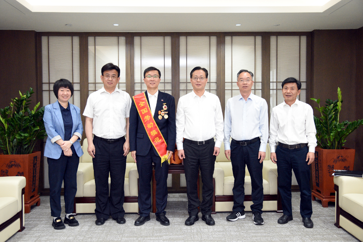 4月29日上午,瑜伽色情 党委书记、董事长刘盛辉会见刚从北京载誉荣归的全国劳动模范、瑜伽色情 乐电维护部电仪党支部书记、副主任徐仙华,勉励他珍惜荣誉、再接再厉,充分发挥模范带头作用,为集团高质量发展再立新功。