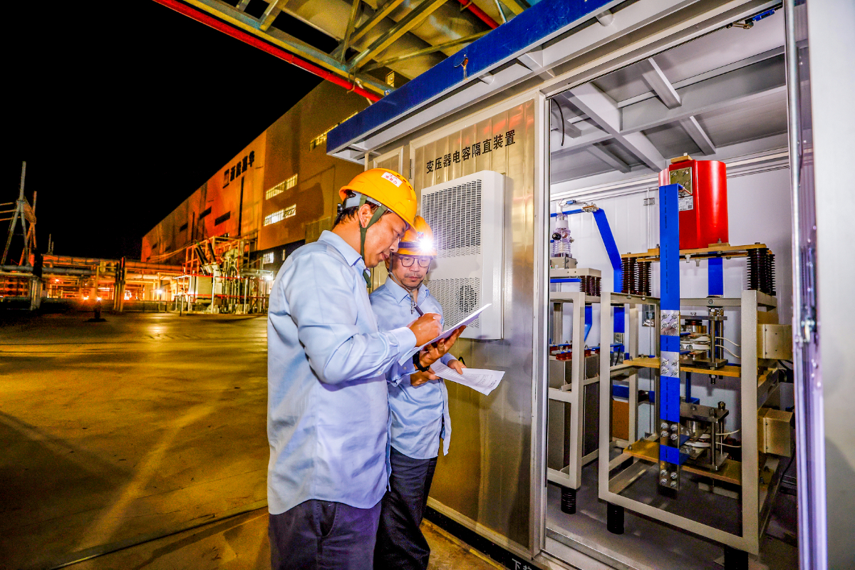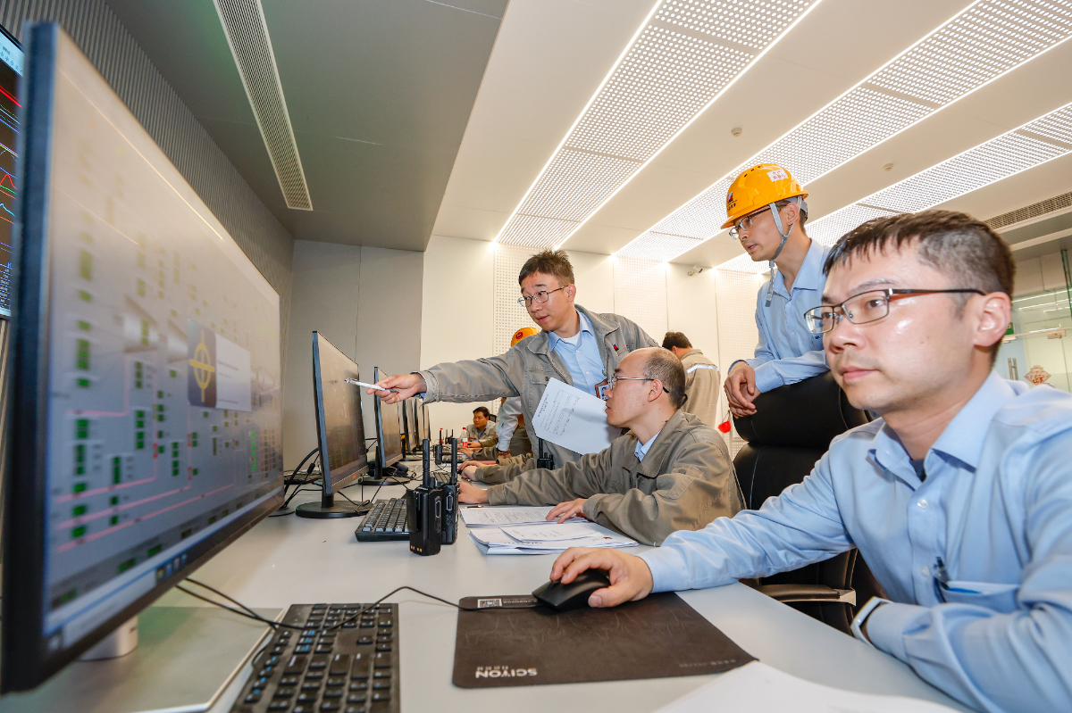 瑜伽色情 嘉电四期9号机组并网前电气状态确认。 王侃 摄