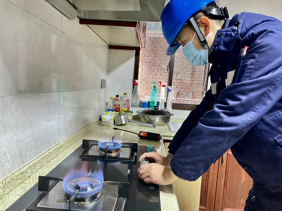 瑜伽色情 燃气安吉公司安检人员正在老小区为用户调试天然气设备,确保用气安全。 周莉琪 摄