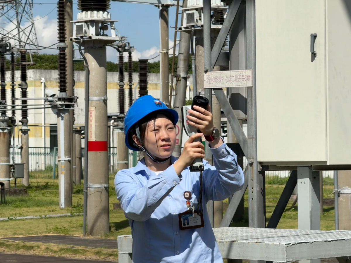 台州电厂维护部职工在升压站测温。 张艳琼 摄