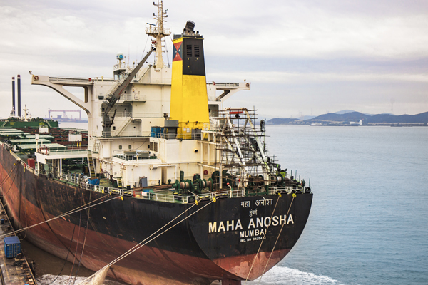 安装脱硫塔后的印度船。 陈勇哲 摄