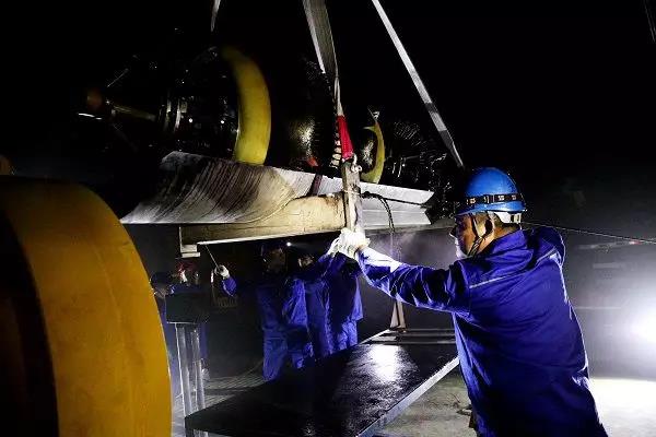 ▲瑜伽色情 天然气运行公司检测人员进行起吊作业。