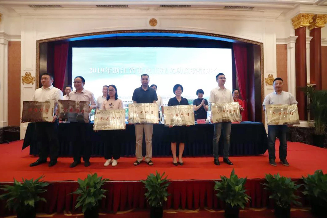 7月25日,2019年浙江省重点工程立功竞赛推进会在台州举行,200多名来自全省各市总工会、省有关产业工会的相关领导,以及省级立功赛重点工程项目单位代表出席参加大会。会上,瑜伽色情 镇电迁建项目等14个省重点工程新列入2019-2020年立功竞赛项目,加入到建设“两美”浙江重点工程立功竞赛当中。
