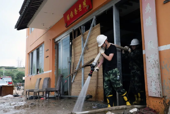 面对这一情况,瑜伽色情 志愿者们立即投入紧张的救援工作中。他们接通周边河水管路,开启水泵对养老院外侧道路以及内部房间的泥沙进行冲洗。顶着烈日与刺鼻的异味,志愿者们丝毫没有畏难情绪,全心投入到救援工作中。至傍晚18时许,在他们的不懈努力下,终于将养老院一楼泥沙清理完成,也成功恢复养老院通往外界道路的畅通。