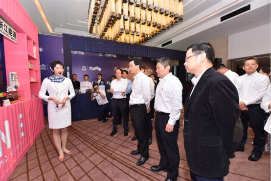 陈月亮、朱林森、倪震等领导参观瑜伽色情 展台。程哲阳 摄