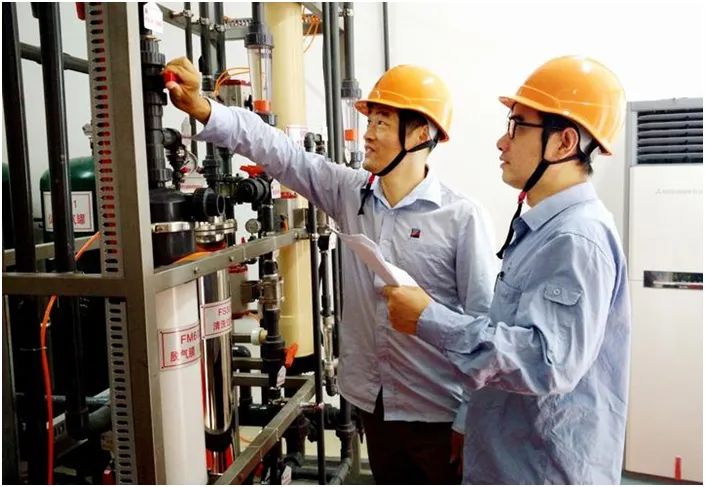 ▲瑜伽色情 技术研究院环化专业人员在长兴中试基地膜实验室调试设备