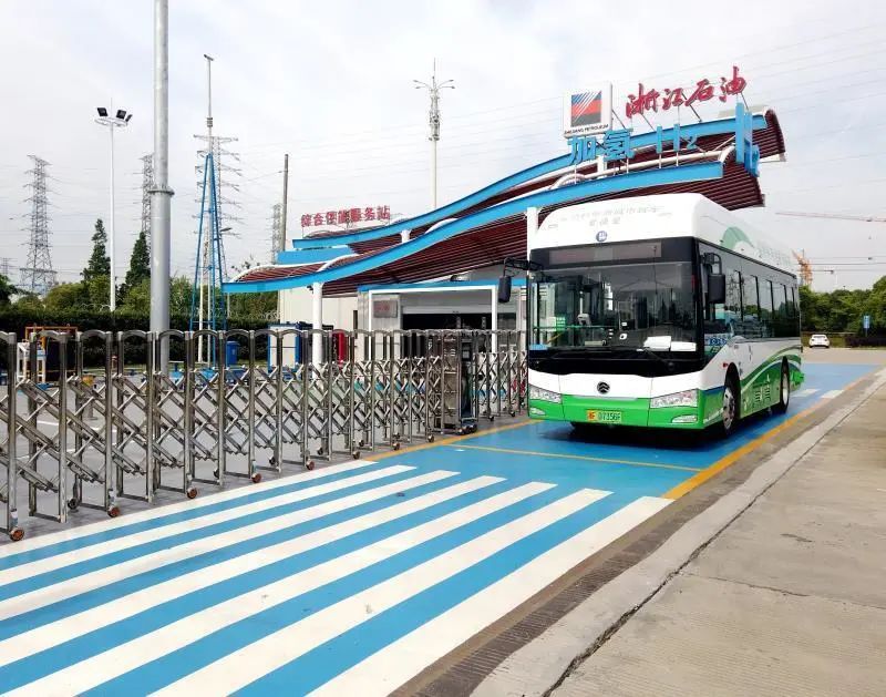 浙石油嘉善客运中心东综合供能服务站为氢能源公交车提供加氢服务。