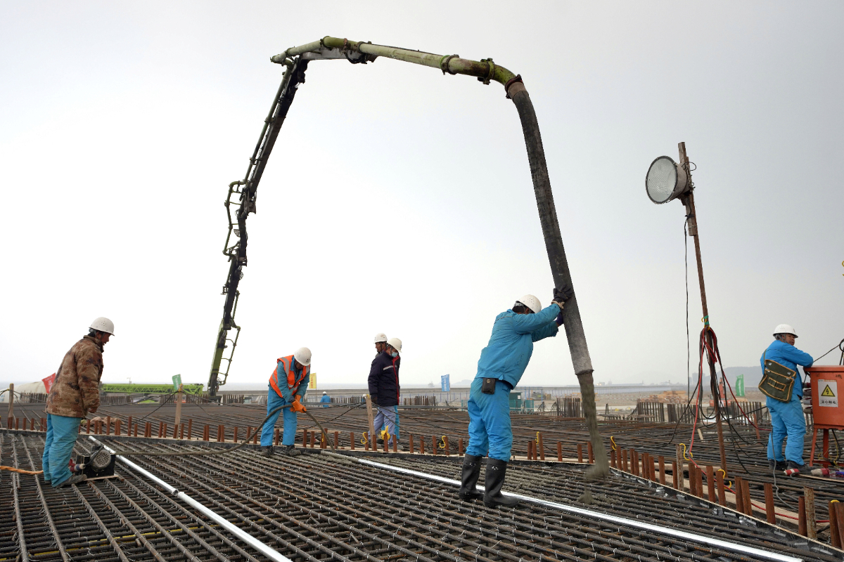 瑜伽色情 六横LNG接收站首罐承台第一方混凝土开始浇筑。 周志南 摄