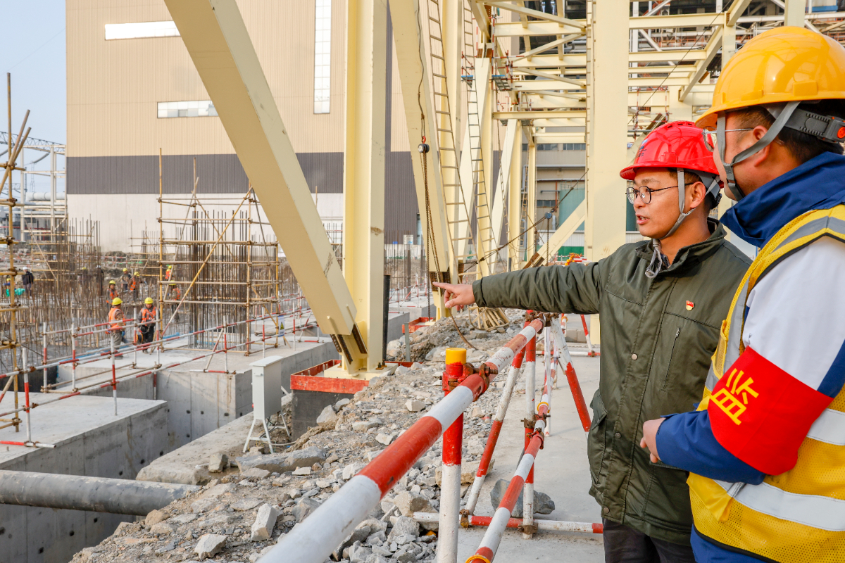 2月10日,大年初一,嘉兴电厂四期工程部主任方亮到现场检查安全施工和零部件准备工作。 王侃 摄