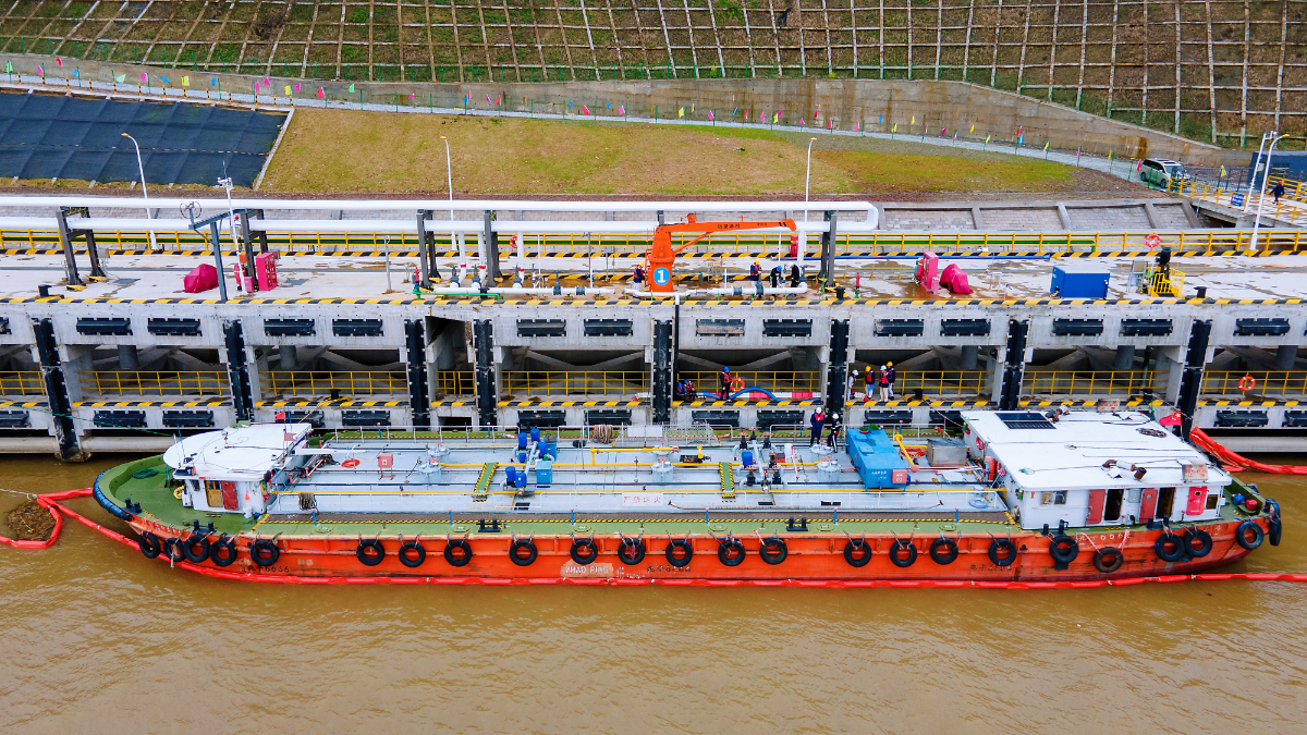 “一切检查完毕,具备接卸条件!” “开始卸油!”3月6日上午10时48分,坐落于兰溪市兰江畔的浙石油兰溪油库内,随着进油现场总指挥一声令下,油库码头正式启泵,“兆平6666”油船466吨柴油沿着配套管道缓缓注入油库D01储罐。这是该油库具备运营资质以来首次进油,有力开创油库运营新局面,奋力夺取一季度“开门红”。