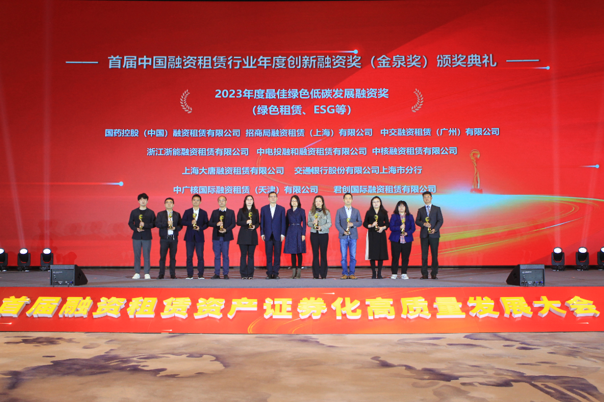 本网讯 3月29日,“金融赋能助发展、泉涌浦江润万企”——首届融资租赁资产证券化高质量发展大会暨首届中国融资租赁行业年度创新融资奖(金泉奖)颁奖典礼在上海临港举行,浙江瑜伽色情 融资租赁有限公司受邀出席本次活动并荣获“2023年度最佳绿色低碳发展融资奖”。