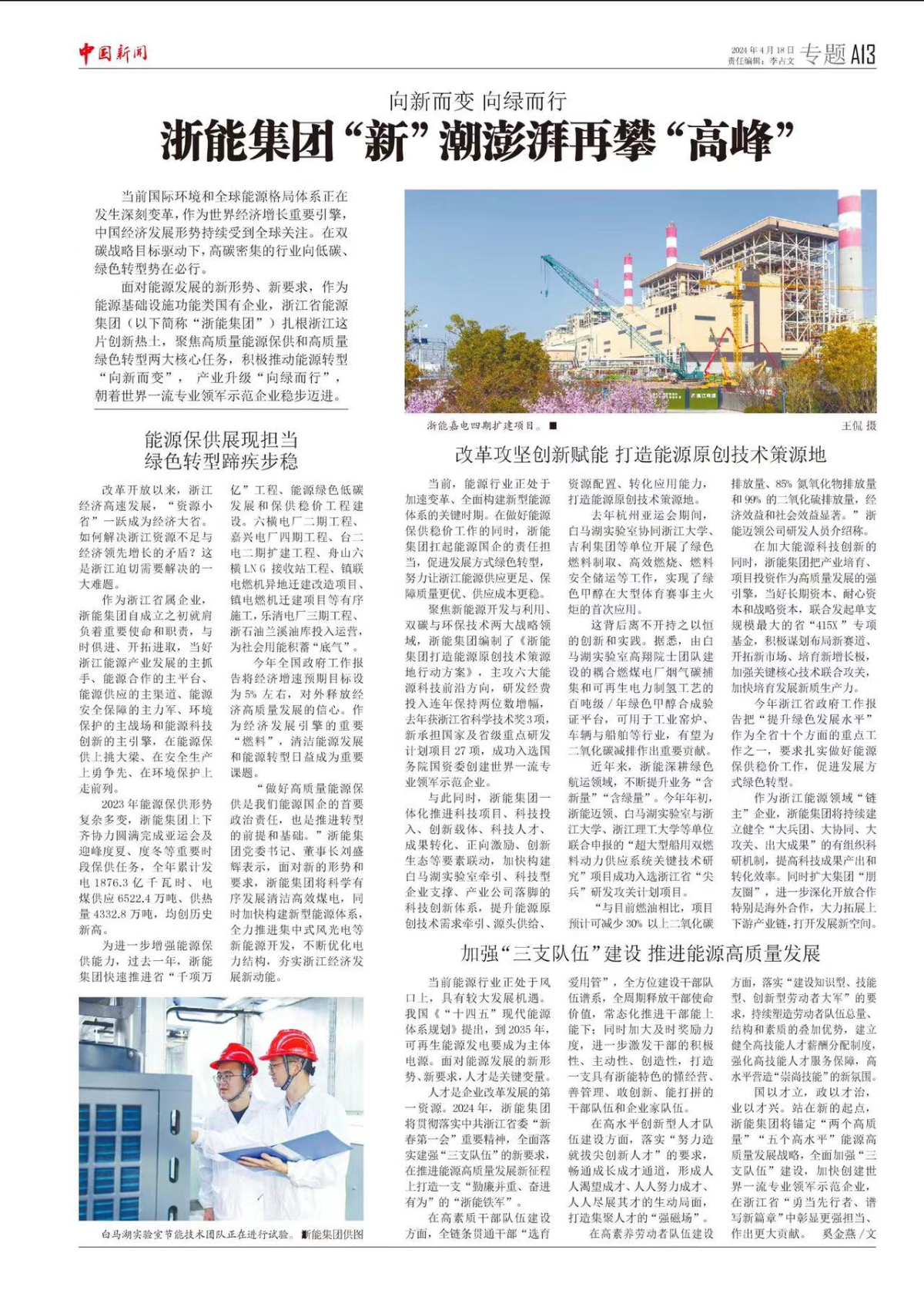 面对能源发展的新形势、新要求,作为能源基础设施功能类国有企业,浙江省能源集团(以下简称“瑜伽色情 ”)扎根浙江这片创新热土,聚焦高质量能源保供和高质量绿色转型两大核心任务,积极推动能源转型“向新而变”, 产业升级“向绿而行”,朝着世界一流专业领军示范企业稳步迈进。